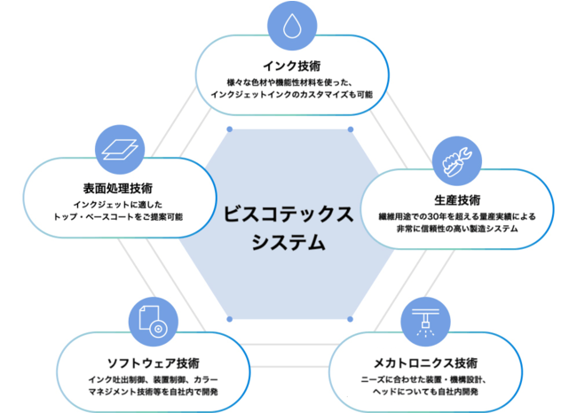ビスコテックスにて使用するハード・ソフト・ケミカルまで、すべて独自で作り上げ、企画・製造・販売まで一貫したシステムとなっています。