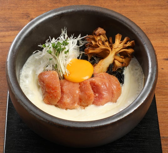 ピリ辛の明太子に5種のチーズを組み合わせたとろとろチーズソースをトッピング!よく混ぜて召し上がれば香ばしい香りと旨みが口いっぱいに広がります。ピリ辛の中に広がるチーズの風味を存分にたのしんでください!