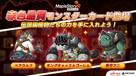 モンスターカードに新たな「赤色品質」が追加されました。7月2日より「ベアウルフ」「キングキャッスルゴーレム」「看守アニ」の3種類赤色品質のモンスターカードが登場します。