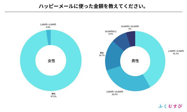 ・男性がハッピーメールに使った金額は、1,000円~5,000円が最も多くなりました。