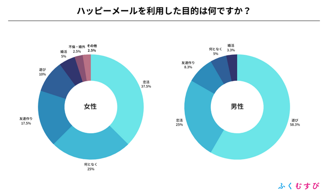 ・男性がハッピーメールを利用した目的は、遊びが1位、恋活が2位となりました。