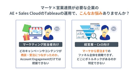 多くのBtoB企業では、マーケティング部門がAccount EngagementでリードのPV数やCV数を計測し、営業部門がSalesforce Sales Cloudで商談・受注を管理しています。しかし、TableauはAccount Engagementへの標準コネクタを持っていないため、Account Engagementのデータを十分に分析できないという課題を抱える企業が一定数存在します。