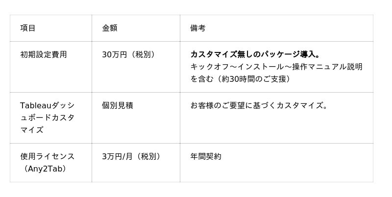 - カスタマイズあり:2~4ヶ月間(5ダッシュボードまでで約2ヶ月が目安)