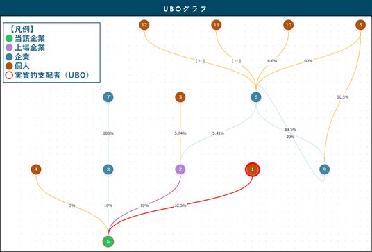 当該企業のデータを取得することで、上の図のようにグラフで支配関係を明らかにすることができます。
