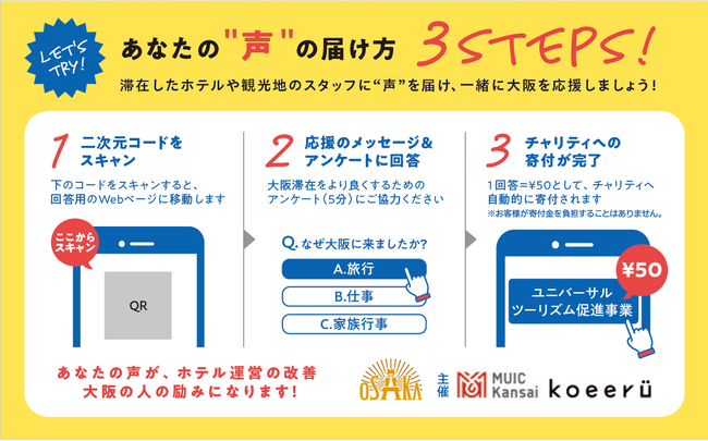 -こちらは1回答=50円が、大阪府内のユニバーサルツーリズム促進の活動に自動的に寄付される仕組みとなっており、誰もが安心して旅行を楽しむことができる社会を目指します。