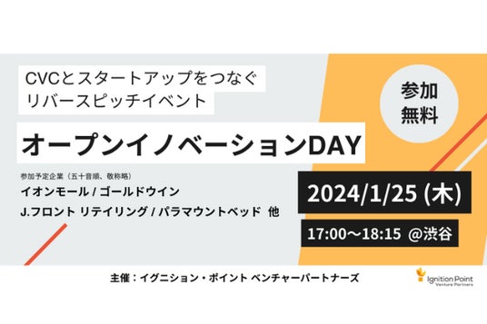 イグニション・ポイント ベンチャーパートナーズ株式会社(本社:東京都渋谷区、代表取締役社長:田代友樹、以下、「IGP-VP」)は、コーポレートベンチャーキャピタル(CVC)と、スタートアップをつなぐリバースピッチイベント「オープンイノベーションDAY」を2024年1月25日(木)に開催します。