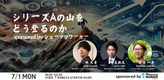 株式会社ココロミル(東京都新宿区、代表取締役社長:林大貴、以下「ココロミル」)は、シューマツワーカー主催の「シリーズAの山をどう登るのか」トークイベントに代表の林がゲストスピーカーとして登壇することをお知らせします。