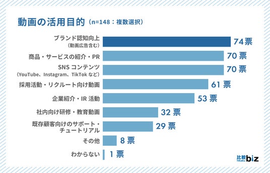 調査対象:「動画を活用している」と回答した回答者の中から、ランダムに抽出したマーケティング・広報・ブランド戦略の関係者を含む148名