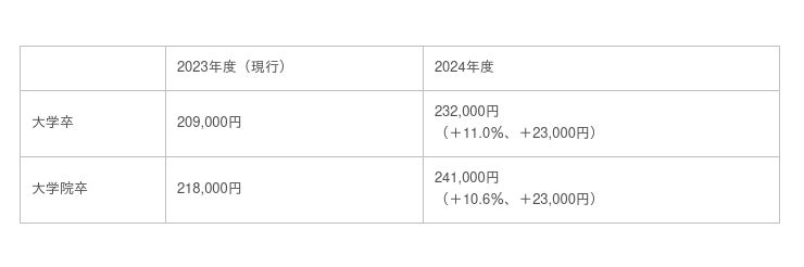これにより、新卒初任給は最大11%増となります。