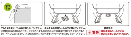 ◇ アルミ袋から取り出し、車のシート下に置くだけ