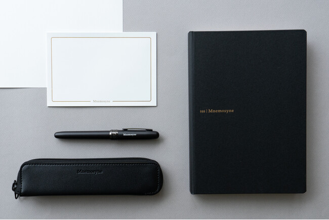 プラチナ万年筆の「PLAISIR」とマルマンの「ニーモシネ ジャーナル」の特別セット。「PLAISIR」は、堅牢でやわらか、ライトで本格的な万年筆です。セットに付属するPLAISIRは、ニーモシネカラーの黒を全体に施し、マットな質感に「Mnemosyne」のロゴを刻印した特別仕様です。他にも、ペントレーにもなる「万年筆ケース」、オリジナル箔付き「メッセージカード」、「吸取紙」がセットになっています。