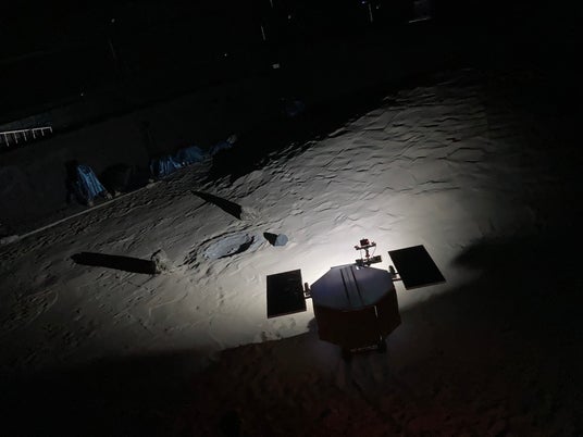 JAXA宇宙探査実験棟の宇宙探査フィールドの模擬月面環境で模擬ローバを使用した実証実験を行っています。月極域を想定し、永久影や横から差し込む太陽光を模擬した照明環境で、障害物検知と3D地図作成機能の性能、精度を検証し、性能改善を進めています。※5