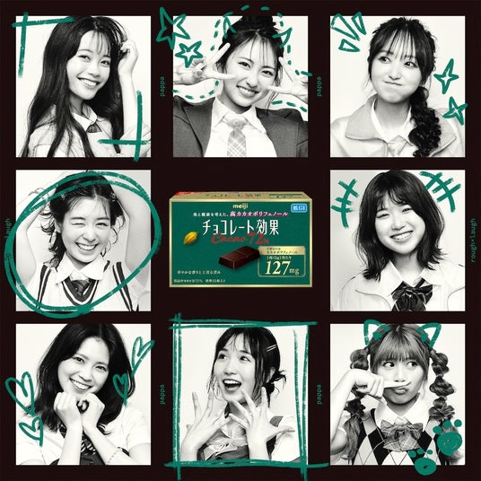 デジタルシングルジャケット写真とカラー違いのMeijiタイアップ商品「チョコレート効果バージョン」も登場。SNSを中心に、健康を考えるチョコレート「チョコレート効果」