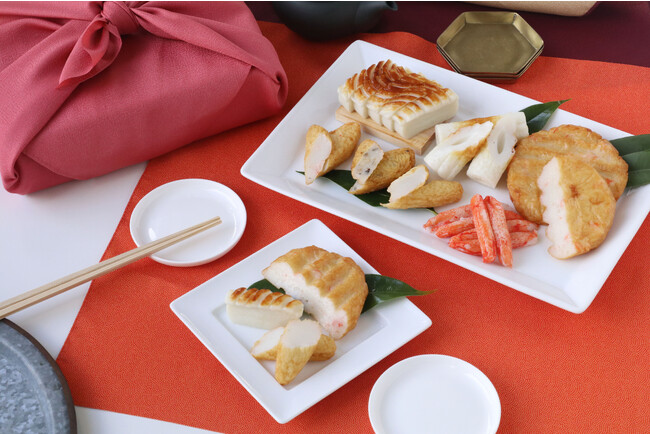 ヤマサ蒲鉾の直売店「かまぼこ工房 夢鮮館」の商品からおすすめ品を厳選、さらに長寿の象徴とされる「えび」を具材に使用した「しらさぎ揚 えび入り」「えび揚げ 真空」が入った敬老の日ならではの詰合せとなっています。