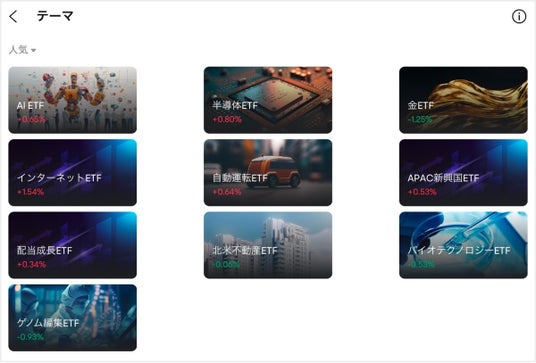 「テーマに沿ったETFを見つけたい」場合はテーマ型ETFから探すことも可能です。新しいテーマも随時加わる予定です。