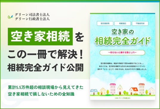 グリーン司法書士法人・行政書士法人・税理士法人(所在地:東京都新宿区西新宿1丁目26番2号新宿野村ビル12階、グループ代表・司法書士・行政書士:山田 愼一)は、空き家の相続に悩む方に向けた無料ガイドブック 『空き家の相続完全ガイド ~知らないと損する落とし穴~』 を公開しました。