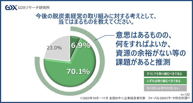 いずれは取り組むべきと約7割が回答し、、意欲はある一方実行に移せていないと明らかに
