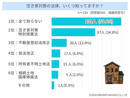 空き家対策の法律幾つ知ってますか?(n=250 回答数306・複数回答可)