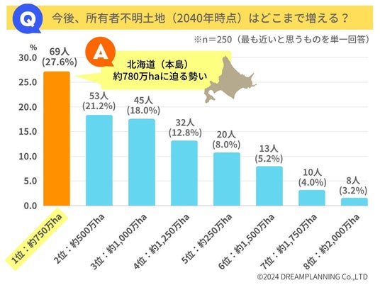 2040年に所有者不明土地はどのくらいになる?(n=250・最も近いと思うものを単一回答)