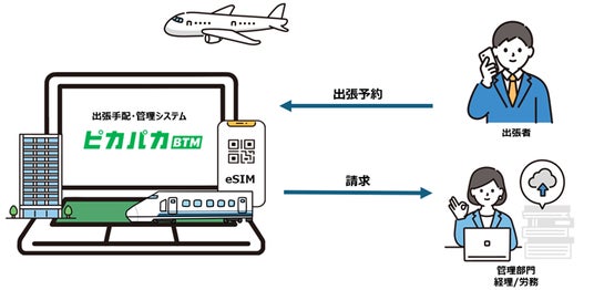 「ピカパカBTM」では、海外出張予約をする際に、航空券やホテルとセットで、eSIMも予約が可能になります。法人への請求書払いになるため、出張者様の立替精算は不要です。海外通信をご要望の際には、この機会にぜひeSIMご利用ください!