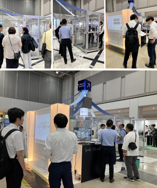 今回の出展では、業界初の独自室圧制御方式を採用した“据置型小型クリーンブース”の実機展示や紹介動画の投影を中心に、様々な利用シーンを想定した再生医療サービスの提供概要を最新事例を交えてご案内いたしました。