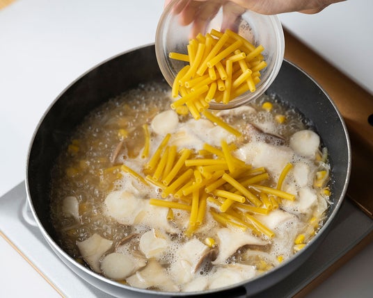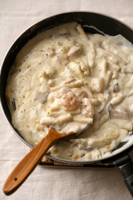 「えびとマカロニのグラタン風」(舘野鏡子さん)フライパン1つで完成! 生クリームも不要!