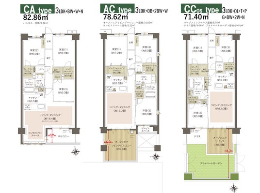 (3)平均面積73平方メートル 超・全75タイプの多彩なプラン、ZEH-M Oriented・低炭素建築物認定。