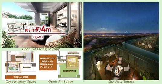 専有部は、1都3県および立川市で供給されている新築分譲マンションの平均面積を超える73平方メートル 超の広さを確保。2面をガラスに囲まれたコンサバトリースペースや奥行き4mのバルコニー、屋上テラスや専用駐車場付きの1階住戸など、個性豊かで多彩なプランを展開します。