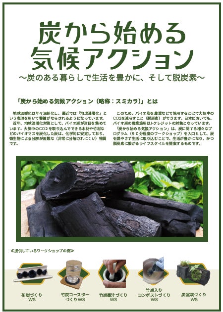 公益財団法人京都市環境保全活動推進協会(所在地:京都市伏見区深草池ノ内13、理事長:新川達郎)は、持続可能な社会の実現を目指し、バイオマス有効活用推進事業「炭から始める気候アクション」を展開しています。