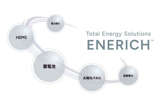 ENERICH(TM)は、「太陽光パネル」、「蓄電池」、「HEMS(エネルギーマネジメント)」、「でんき」、「電力取引」で構成するパッケージブランドで、お客様は本パッケージを導入し電力を運用することで新たな価値を生み出すこととなります。