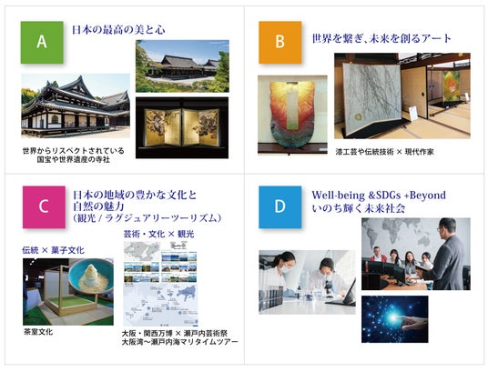 いのち輝く未来を創る4ゾーンにて、54団体106ブースによる出展を行い、「アート・デザイン・サイエンス・テクノロジー・経済の共創~最高峰の日本の美と心~」を世界に向けて発信してまいります。