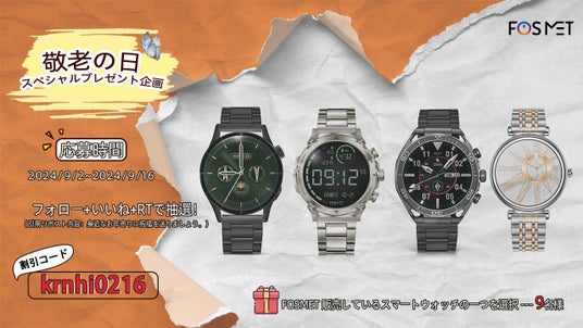 ■賞品:現在販売中のFOSMETスマートウォッチから1つをお選びください。(9名様)
