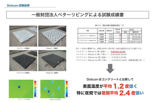 Dotcon舗装の表面温度は、通常コンクリート舗装と比較して