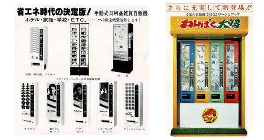 1970年代ごろ、ホテルやデパート、駅などに多く設置されていた「無電源自動販売機」(下写真)をご存知でしょうか。お金を入れて商品を取り出すという、ロッカーのような仕組みを持つ手動式の自動販売機です。ガチャガチャをイメージしていただくと分かりやすいかもしれません。