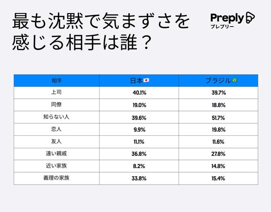 - - 日本人は特に「上司との沈黙」に気まずさを感じやすいことが判明。日本では、上司との円滑なコミュニケーションが重視されるため、沈黙が不安や緊張を生むことが多いようです。