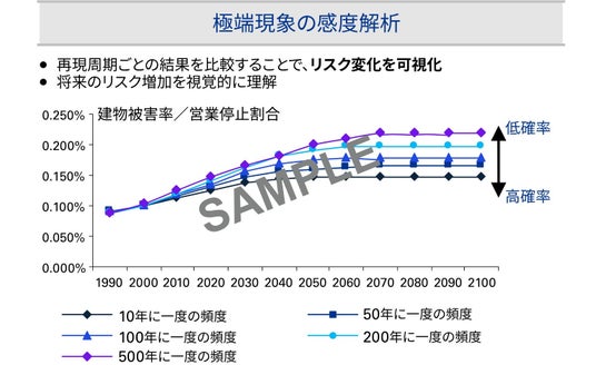最新の気候予測シミュレーションを活用した独自モデルを開発し、リスク変化と財務影響を算定