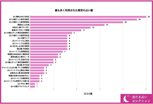 最も多く利用された東京の占い店舗は?