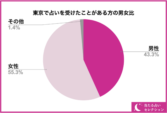 東京で占いを受けたことがある方の男女比について