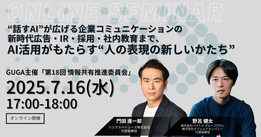 本委員会では、リンクスペイシーズ株式会社(代表取締役:門田 進一郎、所在地:東京都渋谷区、以下:リンクスペイシーズ)の 代表取締役であり、GUGA協議員でもある門田進一郎氏とともに、“話すAI”が広げる企業コミュニケーションの新時代広告・IR・採用・社内教育まで、AI活用がもたらす“人の表現の新しいかたち”──AIタレント動画生成SaaS「AvaMo」から見る、企業発信の次の一手をテーマに情報をお届けいたします。最前線の知見を共有するとともに、オフショアカンパニーが開発・提供するAIタレント動画生成サービス「AvaMo」を中心に、企業の情報発信における生成AI活用の最新動向と導入事例をご紹介いたします。