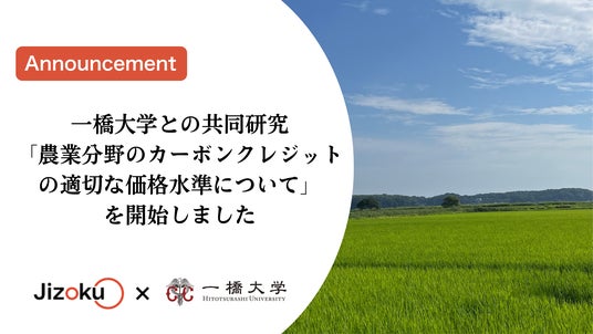 株式会社Jizoku(本社:東京都国立市、代表取締役:片岡慶一郎)および国立大学法人一橋大学(所在地:東京都国立市、学長:中野聡)は、農業分野のカーボンクレジットの適切な価格水準に関する共同研究を開始いたします。研究内容は以下の通りです。