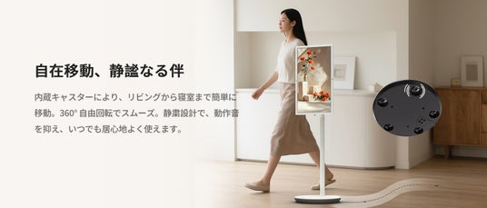 - 空間革命キャスター付スタンドで家中を移動可能。9500mAhバッテリーがコードレス生活を実現