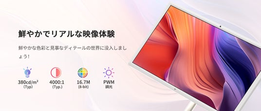 競合製品より300%鮮やかな120% sRGBカバー率を実現した高精細ディスプレイ。380cd/m²の高輝度とPWM調光で、太陽光下でもくっきり表示。ハードウェアブルーライトカット技術搭載で、長時間の使用でも目が疲れにくい設計です。