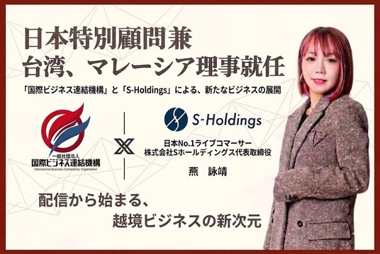一般社団法人国際ビジネス連結機構(所在地:東京都港区、代表理事:松浦 啓介、以下「当機構」)は、株式会社Sホールディングス(所在地:東京都品川区、以下「Sホールディングス」)の代表取締役CEOであり、日本No.1ライブコマーサーとして知られる燕 咏靖(エン ヨンジン)氏が、当機構の「日本特別顧問」、ならびに「台湾支部 理事」「マレーシア支部 理事」に就任したことをお知らせいたします。