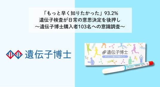 「もっと早く知りたかった」93.2%、遺伝子検査が日常の意思決定を後押し~遺伝子博士購入者103名への意識調査~