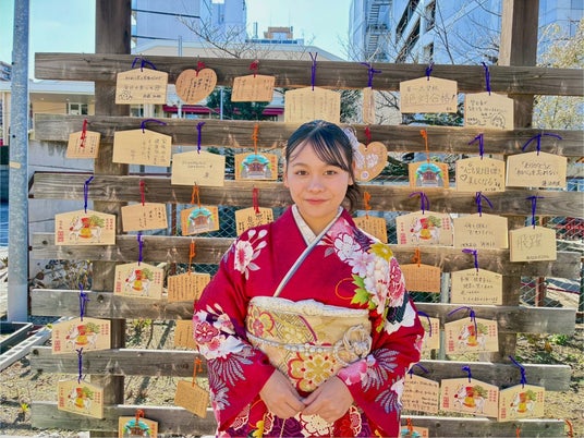 6名は、大田区平和島の本社にて、艶やかな晴着を身にまとい「祝 2026 はとバス二十歳を祝う会」とラッピングされたバスの前で記念写真の撮影や、お越しいただいたメディアの皆さまより取材を受けました。対象のバスガイド・整備士の出身県のメディアにも一部お越しいただき、地元を離れて活躍する姿を取材していただきました。