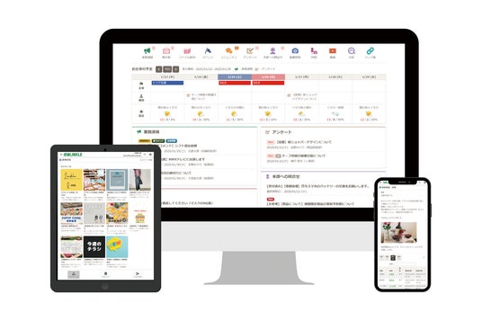 多店舗運営企業に特化した本部-店舗間コミュニケーションツールです。電話やメール、チャットで起こりがちな情報共有の抜け漏れを防ぎ、本部と店舗の様々な連絡・報告を一元化して業務効率化を実現します。