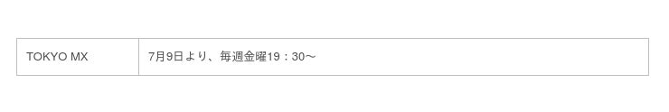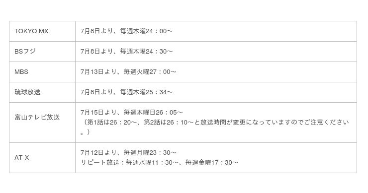 2021年7月8日より、 TOKYO MX/BSフジ/MBS/琉球放送/富山テレビ放送にて放送開始