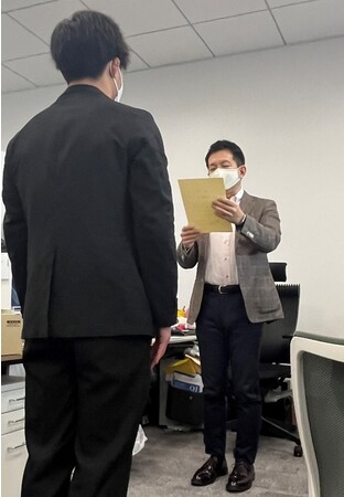 「入社式」というと"新卒社員のためのもの"というイメージが一般的ですが、新たにアールナインの一員となる中途社員へ「入社を心待ちにしていた」という歓迎の気持ちを伝え、入社後の不安を払拭したいという思いのもと開催しております。
