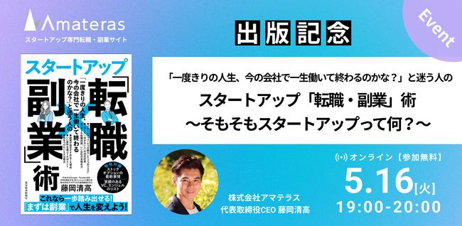 日本にGAFA 級企業を100 社創出するをミッションに! これまで約1,000 名のスタートアップ転職を実現したスタートアップ転職支援事業アマテラス代表取締役CEO 藤岡が 初発刊!