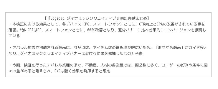ソネット・メディア・ネットワークス株式会社は、この度『Logicad ダイナミッククリエイティブ』において、DSP(*1)によるインターネット広告配信(バナー広告)に関する実証実験を行いました。